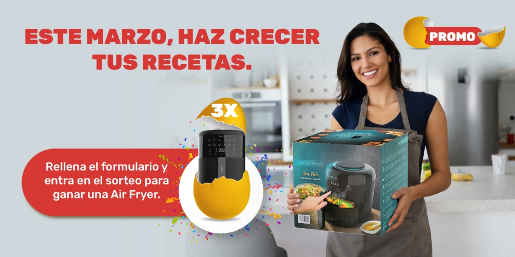 Del 9 de febrero al 8 de marzo, participa rellenando nuestro formulario y entra en el sorteo para ganar una de las tres Air Fryers.